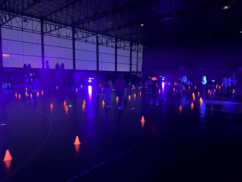 Adieu les vielles pyramides qui n'éclairaient pas beaucoup, place à la puissance de nos projecteurs à Leds qui vont rendre totalement fluorescents les participants et la piste.